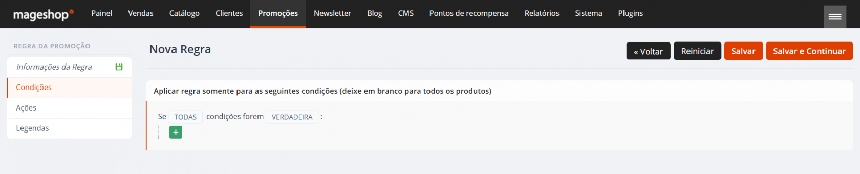 Para um vale-troca de uso geral, não é necessário configurar nenhuma condição nesta aba. Deixe-a em branco e prossiga.