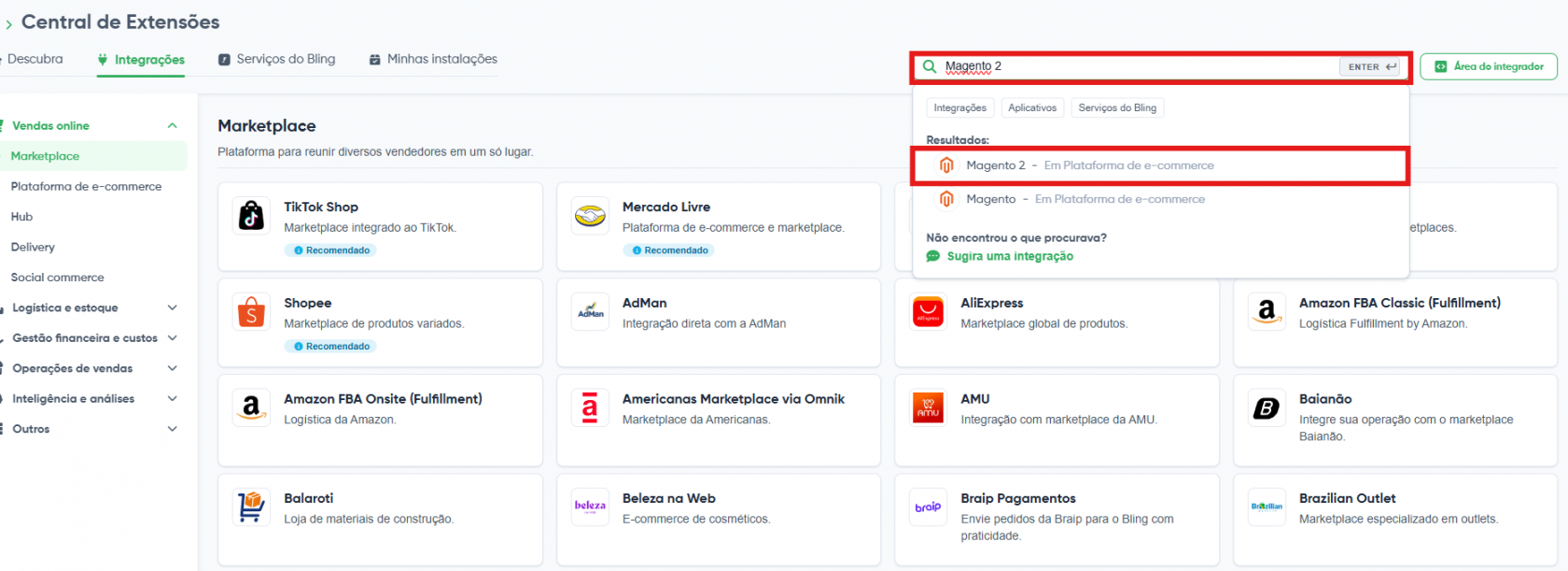 "O Bling permite a integração de pedidos e produtos com o Magento 2."