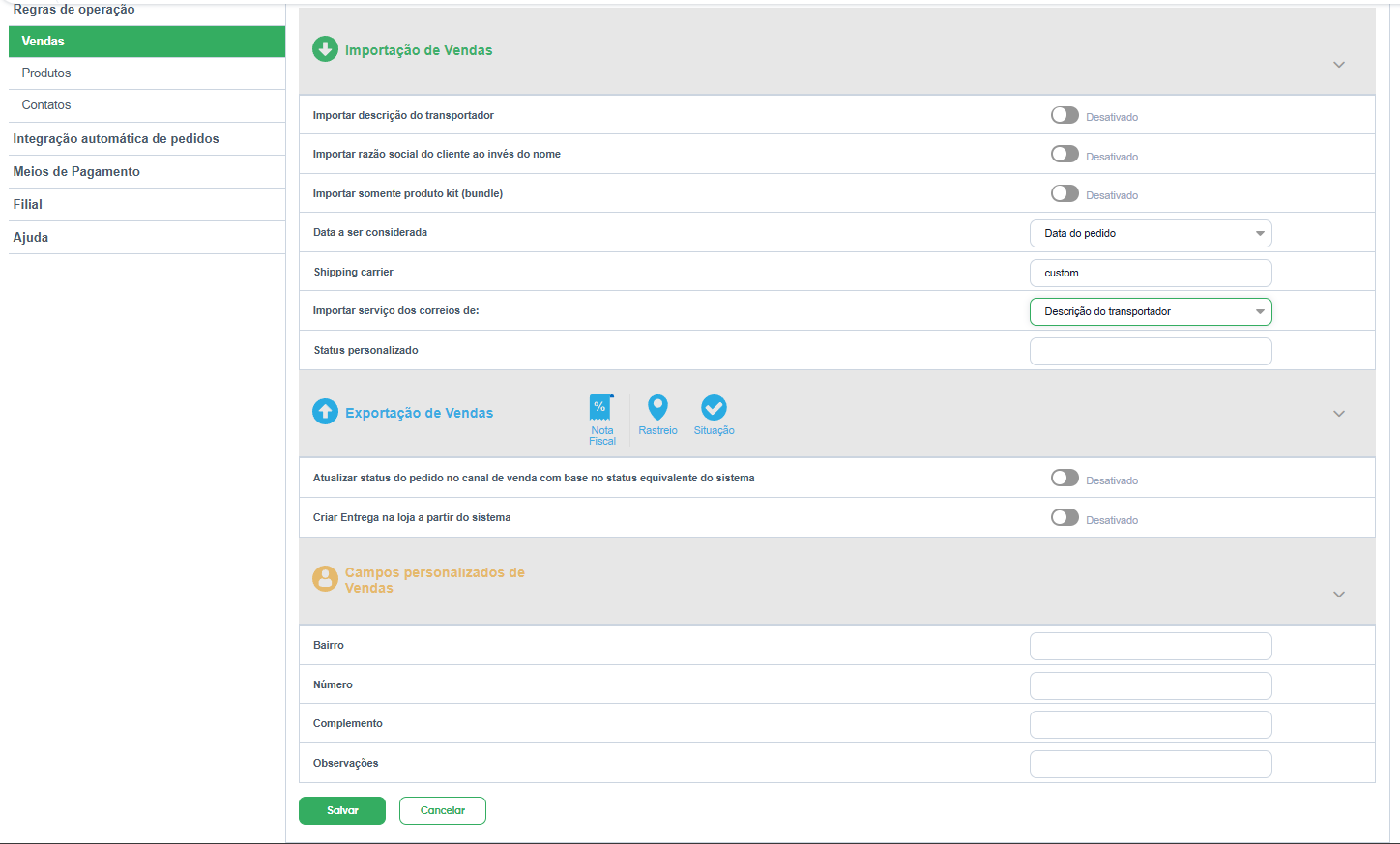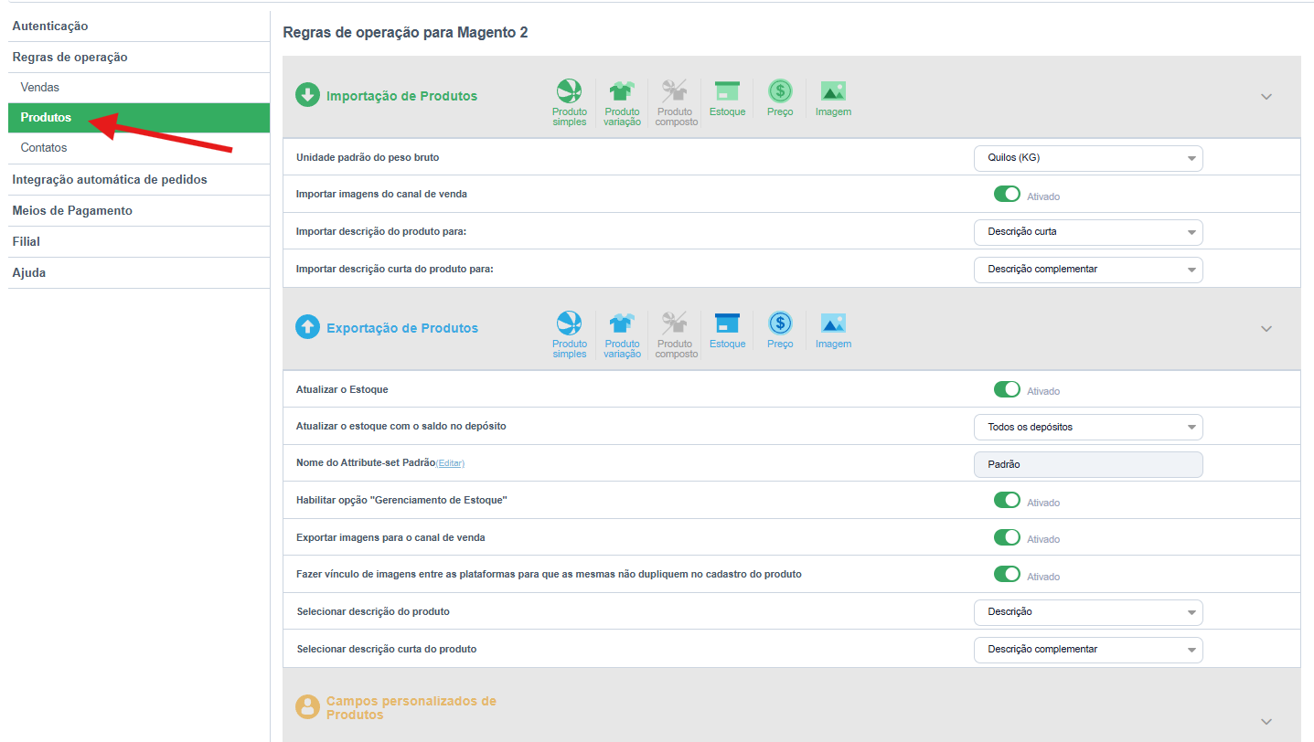 Após integrar a Magento 2 no Bling, é necessário realizar algumas configurações de como essa integração operará no Bling.