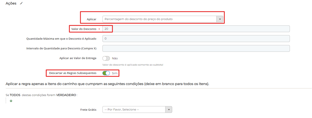 2.3.1 - No campo “Aplicar” selecione “Percentagem do desconto do preço do produto"