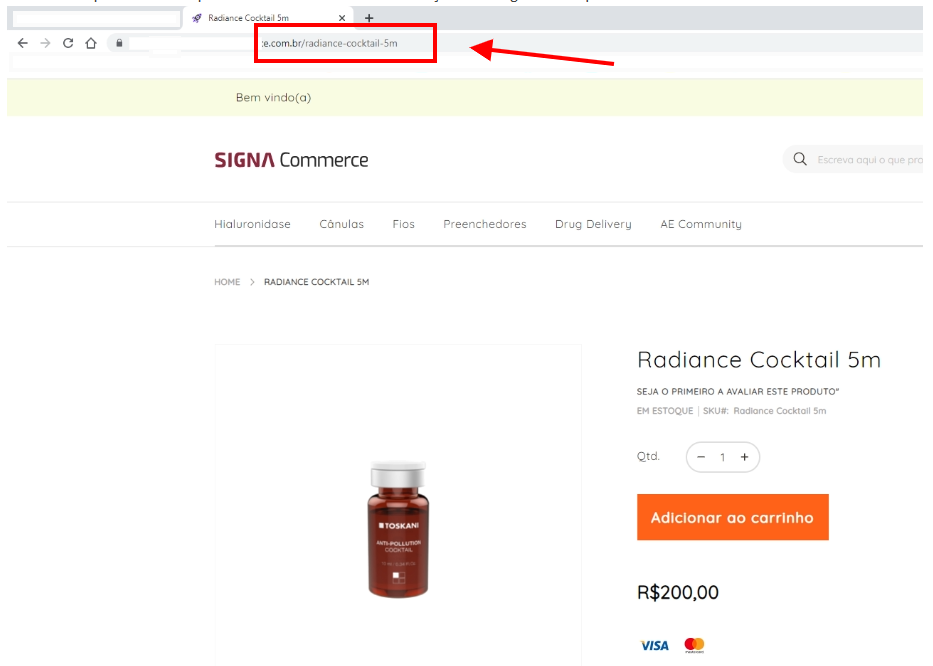 1.1 - No exemplo abaixo vamos pegar a URL no frontend da loja acessando um produto.