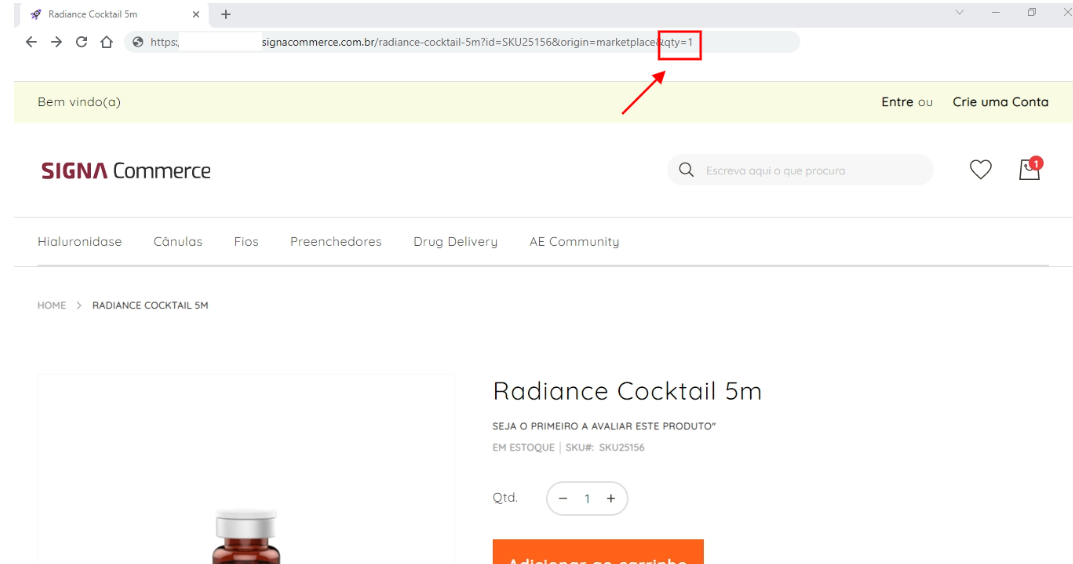 3 - Após montar a URL com o sku e quantidade desejada acesse a url para adicionar os produtos ao carrinho.
