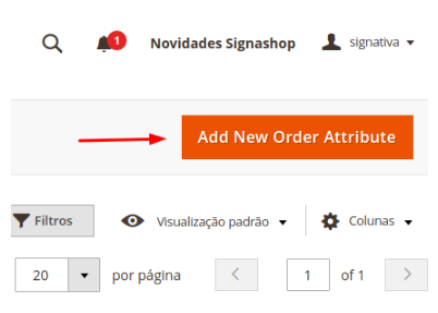 2 - Após isso, clique em Adicionar Novo Atributo de Pedido (Add New Order Attribute)