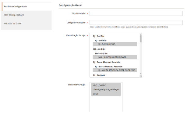 7 - Em Gerenciar Títulos, informe os títulos de atributos para cada loja cadastrada.