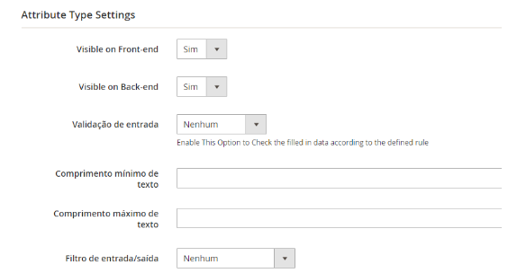 4.4 - Na opção Comprimento mínimo de texto, informe o tamanho mínimo do texto que deseja para o atributo.