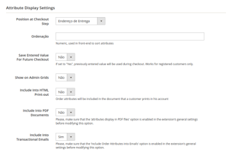 5.7.1 - Lojas > Configurações > Configuração > Extensões Amasty > Atributos do Pedido