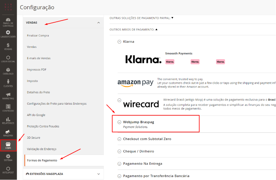 O primeiro passo é entrar em contato com a equipe Braspag clicando aqui. No momento da contratação, informe o nome da plataforma que utilizará, nesse caso Signa Commerce. Após receber os dados de integração, siga os passos abaixo: