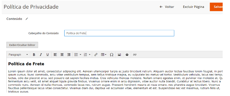 No passo a passo abaixo, iremos aprender a criar textos institucionais. São páginas, utilizadas normalmente para trazer informações da loja como: