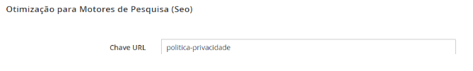 Na aba Otimização para Motores de Pesquisa (SEO) em Chave Url você pode definir ou alterar o nome da url (será a qual irá ser utilizada para encontrar a página na loja)