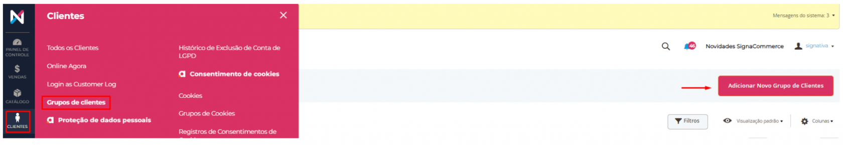 1 – Acesse seu painel: Clientes > Grupos de Clientes > Adicionar novo grupo de Clientes.