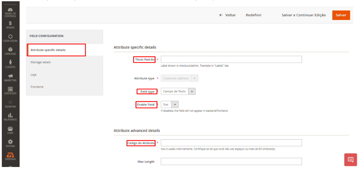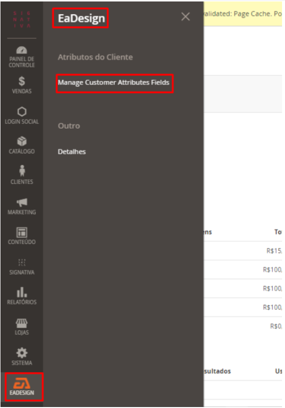 1. Acesse o menu EADESIGN > Manage Customer Attributes Fields