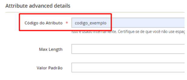 - No código do atributo coloque escrito por extenso sem caracteres especiais, exemplo: referencia ou nome_recebedor