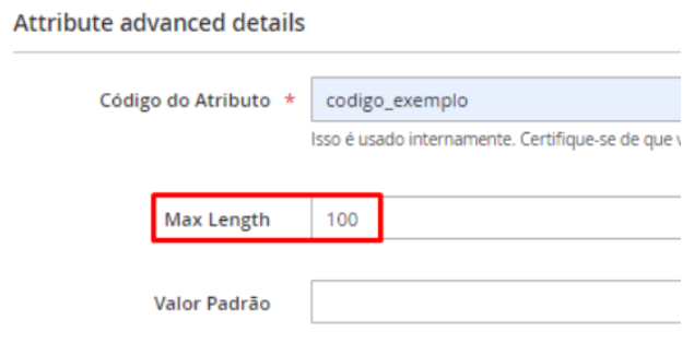 - Caso seja do tipo texto, é possível limitar o máximo de caracteres que o cliente irá digitar, no exemplo abaixo está marcado como 100: