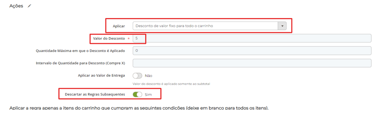 2.3.1 - No campo “Aplicar” selecione “Desconto de valor fixo para todo o carrinho".