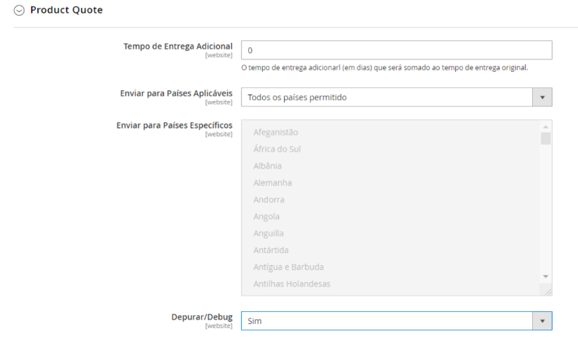 - Na opção Envio para os países aplicáveis, manter a configuração “Todos os países permitidos