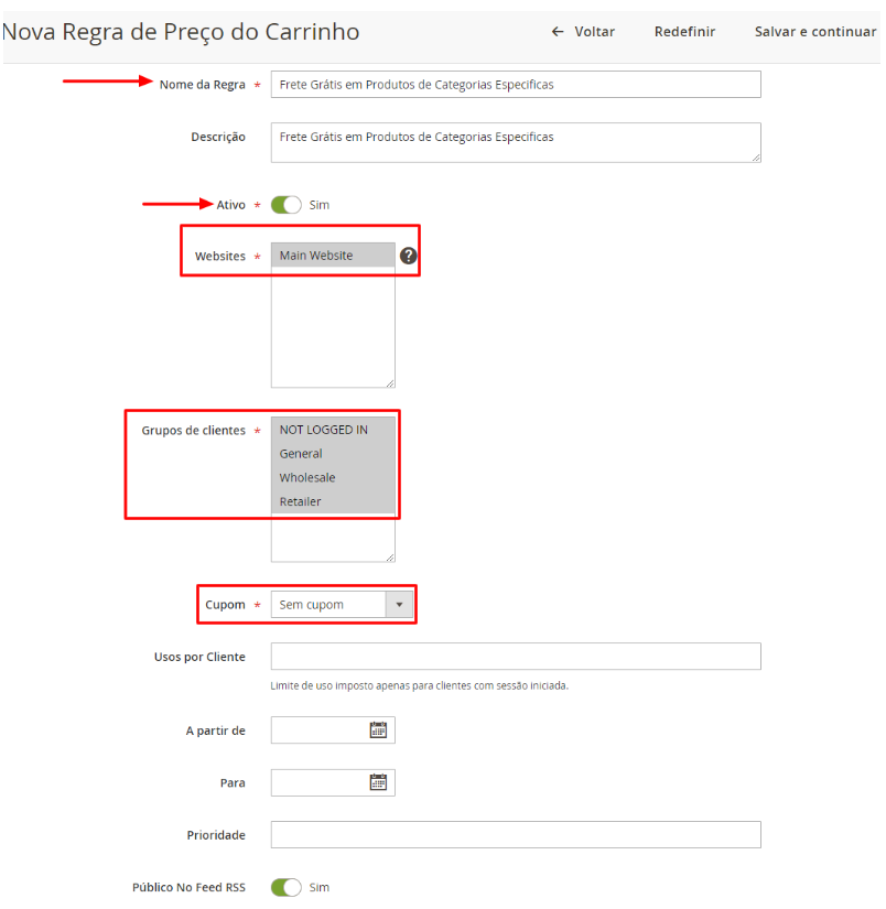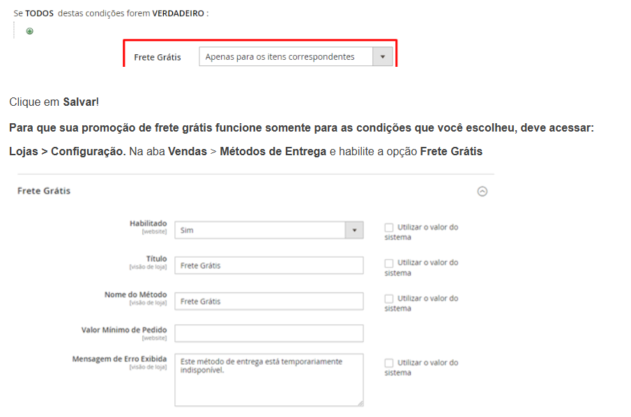 Para que sua promoção de frete grátis funcione somente para as condições que você escolheu, deve acessar:
