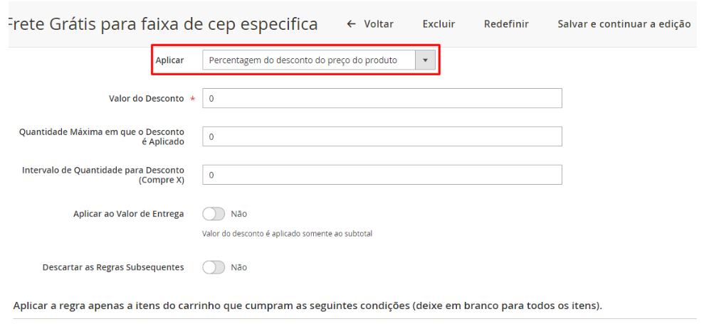 4.2 - Ajuste "Valor do desconto" para "0"