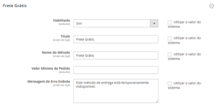 4.3 - Defina "Frete Grátis" para "Apenas para os Produtos"