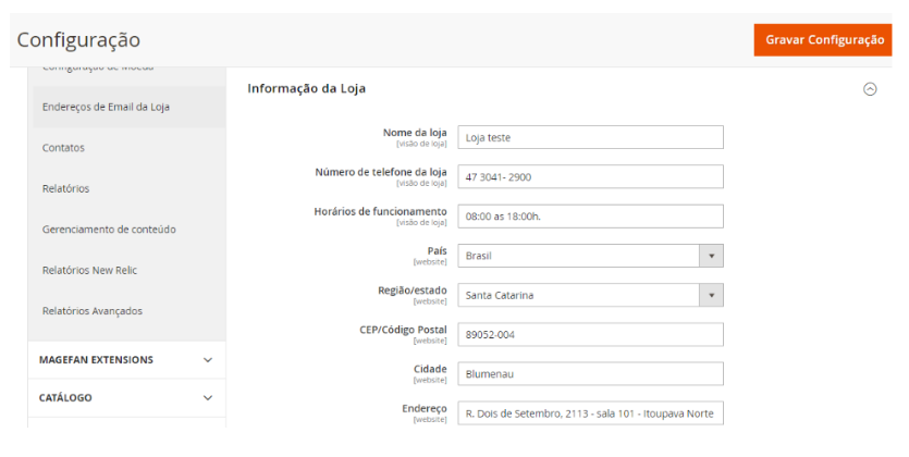 No tema que está sendo utilizando iremos continuar configurando informações básicas da loja :)