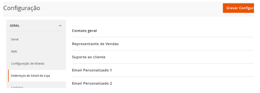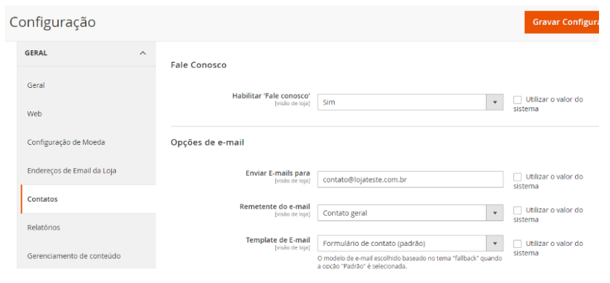 - Habilite a opção fale conosco e configure algumas opções dos e-mails que já foram cadastrados.