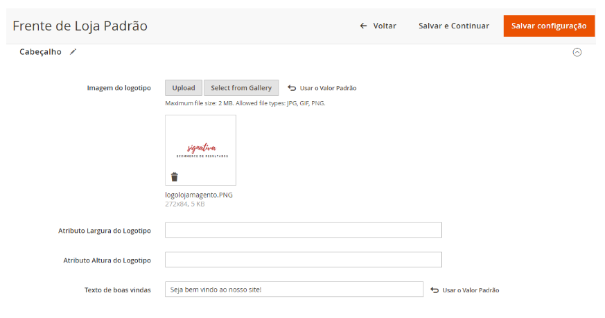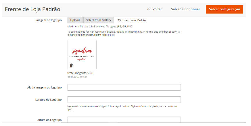 obs 2: caso seja necessário, as dimensões da logo podem ser ajustadas nos campos Atributo Largura e Altura de Logotipo.