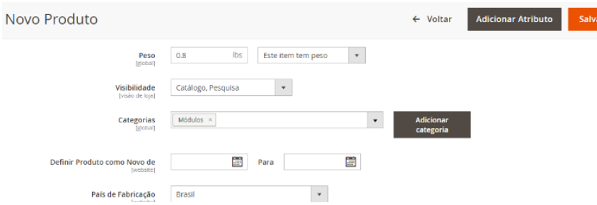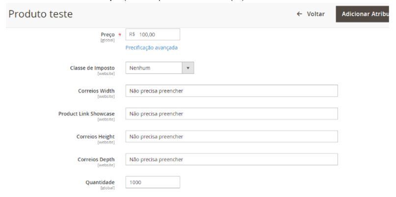 Na área de cadastro irá aparecer a aba de atributos, e então você deve preencher as características conforme a particularidade de cada produto.