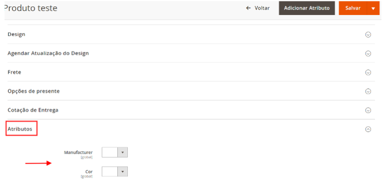Os atributos do produto, servem para inserir características como: cor, tamanho, fabricantes, modelo, entre outros. No cadastro você pode selecionar atributos já cadastrados ou ainda cadastrar novos atributos conforme a necessidade da sua loja.
