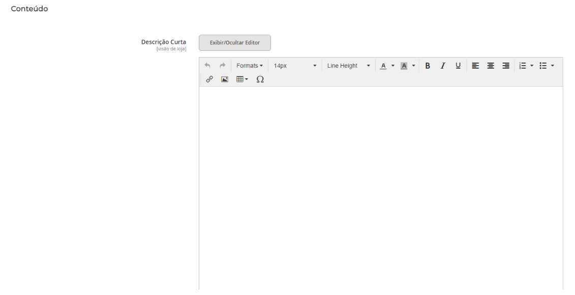 1.4 - Conteúdo: Inserir ou editar a descrição principal ou curta que aparecerá na página do produto.