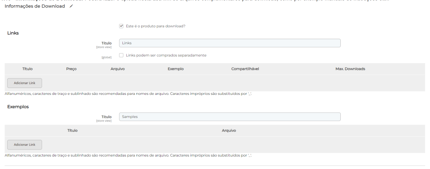 1.13 - Informações de Download: Poderá fazer o upload nesta aba link de arquivos complementares para download, como por exemplo manuais de instruções etc..