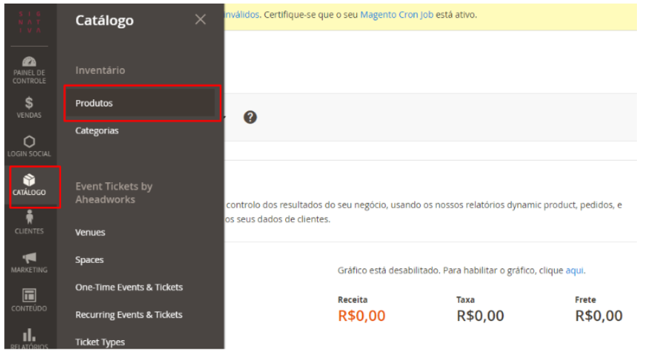 Acessar: Painel> Catálogo> Produtos