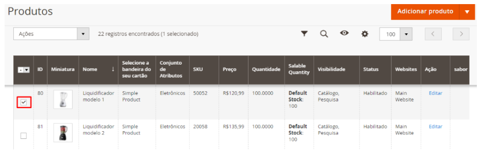 Selecione uma das opções, e uma relação com todos os produtos da sua loja irá se abrir.